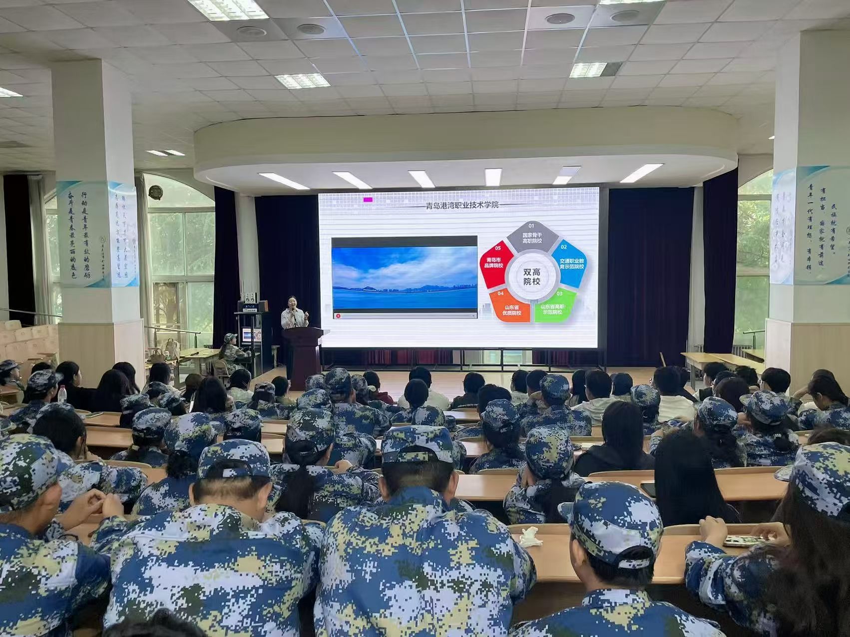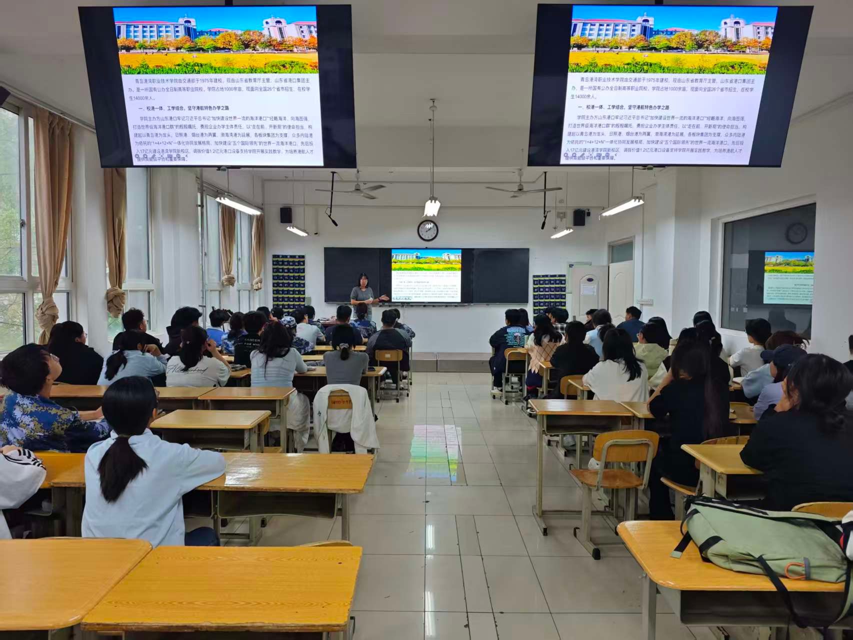 各专业带头人从国家、省、市宏观发展战略入手,介绍了各专业对应的产业行业现状、人才需求与发展前景,同时融入学院山东港口的办学背景和办学优势介绍,重点介绍了学校“打造五个‘出彩港湾’ 建强港口‘黄埔军校’”的特色行动计划,为新生融入港湾生活、树立成长目标统一了思想。随后,各专业带头人以学院 “德技并修、产教融合” 人才培养理念详细介绍了各专业的办学特色、亮点及优秀毕业生的事迹故事,并对新生提出了珍惜学习机会、锤炼专业技能、拓展国际视野的殷切期望。互动环节中,新生们围绕专业学习重点、课程考核方式、职业资格考证、实习实践安排等问题积极提问,现场教师逐一细致解答,氛围热烈融洽。