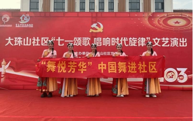 以真实舞台任务为驱动,搭建“校内+校外”双实践平台。校内承接建校50周年文艺演出等大型活动,学生分组完成创编排练、舞美设计、宣传推广、现场执行全流程工作;校外联动大珠山社区等单位,开展“七一颂歌唱响时代旋律”“舞悦芳华中国舞进社区”等公益演出,让学生在真实场景中锤炼编、导、演、控综合能力。